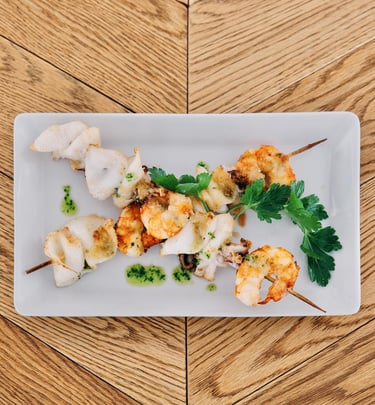 Carpaccio di polpo, insalata di mare, gamberi marinati, tartare di tonno, cozze gratinate, alici marinate, salmone affumicato, limone, olio extravergine di oliva, prezzemolo, pepe